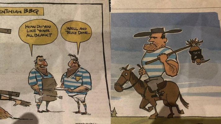 "Un noto media neozelandese ha pubblicato alcuni fumetti riferiti a quanto accaduto lo scorso fine settimana in Australia, con la storica vittoria degli argentini sugli All Blacks in una classica del grande rugby. "Buona caccia Pablo, anche se temevo che potesse andare peggio", si legge nella prima immagine pubblicata sul New Zealand Herald, dove si può vedere un uomo con la maglietta argentina, a cavallo, con un uccello kiwi intrappolato.