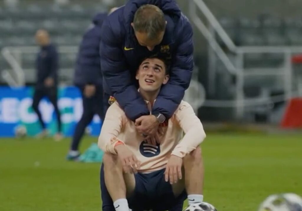 Barcellona, che emozioni: Flick abbraccia Gavi in attesa del ritorno in campo