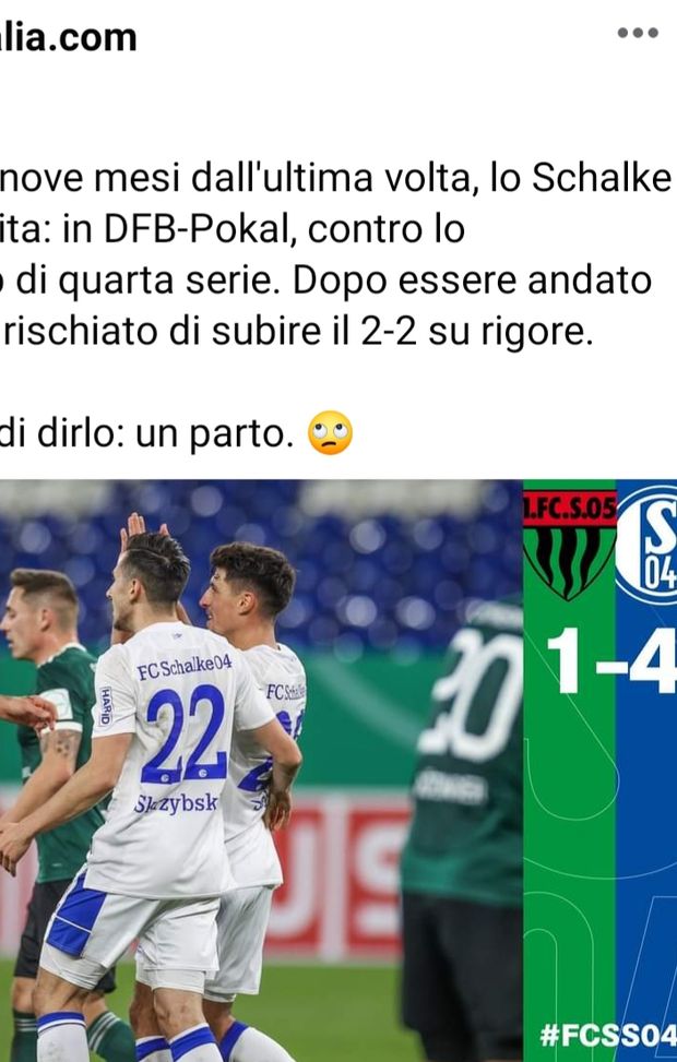 "Possiamo essere molto felici che Ralf Fahrmann abbia parato il rigore di Schweinfurt", ha detto a Sky Steven Skrzybski, esterno dello Schalke: "Non stavamo esattamente scoppiando di fiducia in noi stessi, ma stiamo tutti lavorando sodo e finalmente abbiamo ottenuto la ricompensa che meritiamo". La partita avrebbe dovuto svolgersi a metà settembre, ma l'appello legale della squadra di terza divisione del Turkgucu Munich, che ha sostenuto che avrebbe dovuto prendere il posto di Schweinfurt nel sorteggio di coppa, è stato risolto solo la scorsa settimana in tribunale.