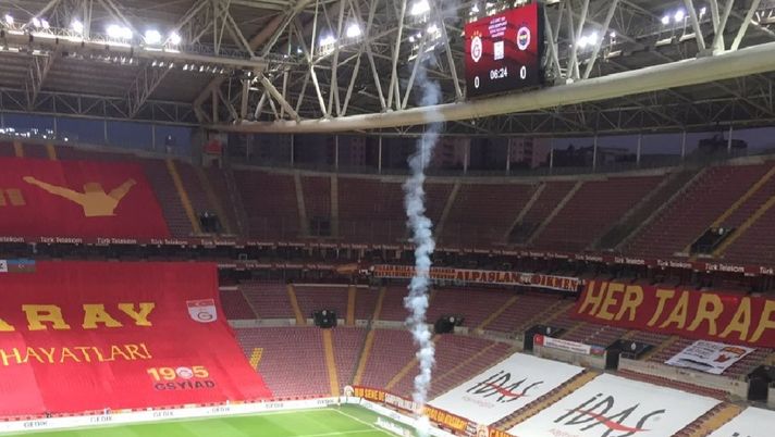Durante il derby, nonostante lo stadio fosse vuoto, con le porte chiuse per rispettare le norme anti-pandemia, dall'esterno dello stadio i tifosi, presumibilmente del Galatasaray padrone di casa, sono riusciti lo stesso a vivacizzare il clima...Improvvisamente ecco un bengala al limite dell'area, con i giocatori in campo...e la Turk Telekom Arena è anche piuttosto alta....