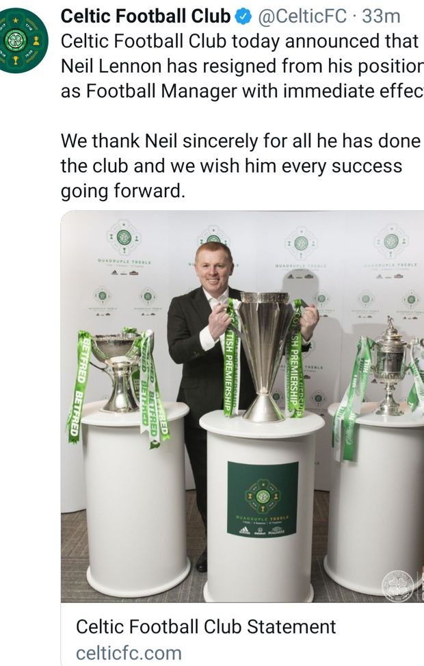 Neil Lennon ha lasciato il suo incarico di allenatore del Celtic, come ha confermato il club in un comunicato sul proprio sito ufficiale