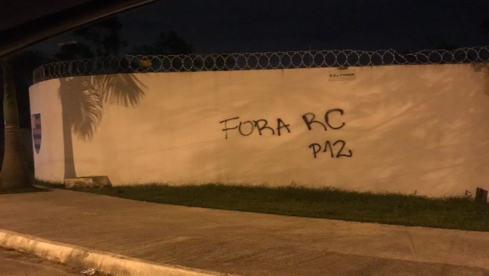 I tifosi del Flamengo scrivono sui muri della sede sociale di Gávea e chiedono la partenza di Rogério Ceni.