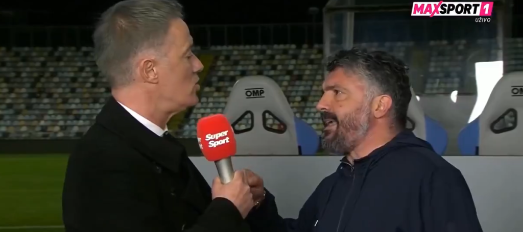 Confronto acceso in tre lingue diverse, Gattuso non stringe la mano all'opinionista