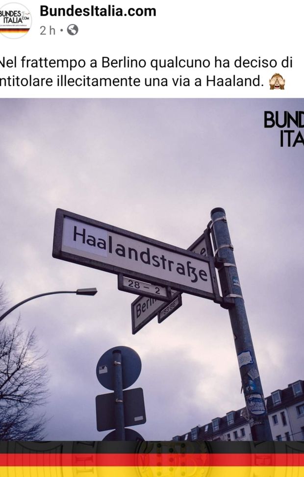 Haaland ha segnato 31 gol nelle 30 partite ufficiali giocate con la maglia del Borussia Dortmund, da quando è approdato in Bundesliga. Nella stagione 20-21, siamo già a quota 15 reti in 12 gare. E a Berlino, ritoccando il cartello stradale, gli dedicano anche una via...