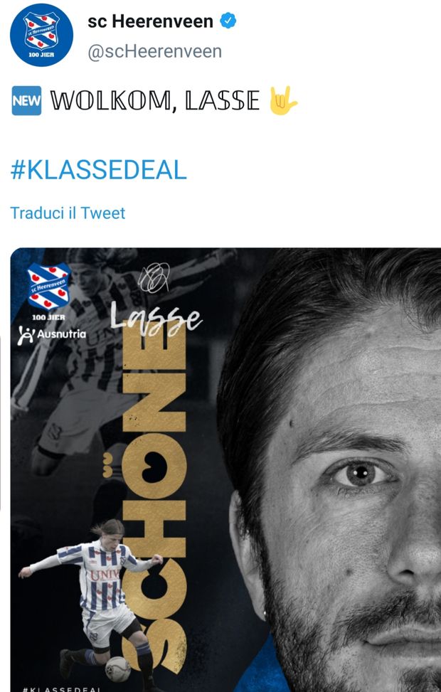 Dopo sette stagioni all'Ajax, Schöne è partito per la Serie A nell'estate del 2019: il Genoa è diventato il suo nuovo club. Nella sua prima stagione italiana, Schöne ha giocato 27 partite ufficiali. Al secondo anno non ha più giocato, dopodiché ha fatto la risoluzione del contratto con il Grifone a inizio gennaio. Schöne ha giocato per la Danimarca cinquanta volte. Il responsabile tecnico Gerry Hamstra sull'arrivo di Schöne all'Heerenveen: "Con le sue qualità ed esperienza, Lasse dà impulso alla nostra squadra. È molto bello che un giocatore con il suo curriculum scelga l'Heerenveen. È la grande opportunità che speravamo. Quindi sono molto felice per il suo arrivo".