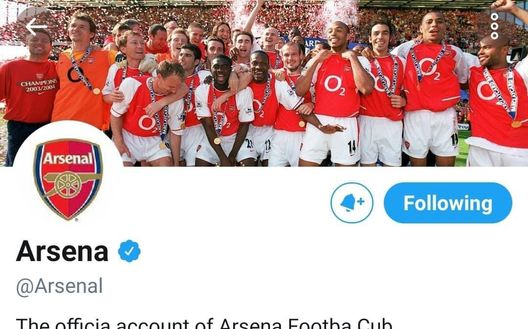 L’Arsenal ha tolto la lettera L dal nome e dalla bio del suo profilo Twitter perchè il 15 maggio di 16 anni fa gli “Invincibles” vinsero la Premier League senza perdere nemmeno una partita.