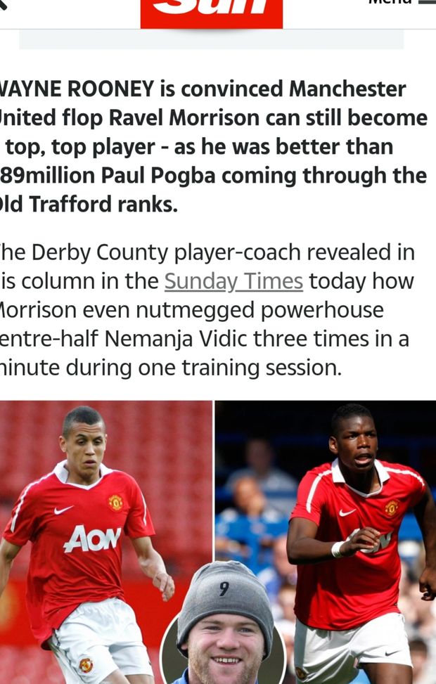 Nella sua rubrica per il Times, Wayne Rooney questa volta ha parlato di Ravel Morrison, ex giocatore di Manchester United e Lazio: "Vedevo giocare Ravel e pensavo che avesse tutte le caratteristiche per esplodere, durante un allenamento fece addirittura tre tunnel a Vidic. Ho visto venire fuori dalle giovanili talenti come Pogba e Lingard, ma Morrison era più forte di loro e di parecchio. Purtroppo ha rovinato tutto con il suo comportamento e uno stile di vita non appropriato, una cosa molto triste".