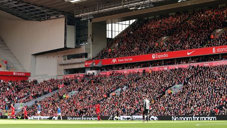 LIVERPOOL, ENGLAND - NOVEMBER 26: A supporter distributing posters on Goodison Road outside Goodison Park before Everton play Manchester United in the first fixture after the club were deducted 10 points by the Premier League for financial irregularities. The stadium has been Everton's home ground since 1892, with the current season scheduled to be their last before moving to a new venue at Bramley-Moore Dock. The visitors won this match 3-0. (Photo by Colin McPherson/Getty Images)