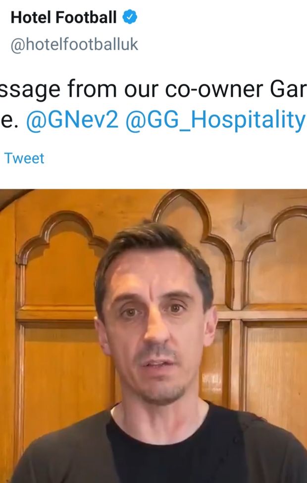 Gary Neville ha deciso di chiudere l’Hotel Football, di proprietà sua e di Paul Scholes e situato di fronte all’Old Trafford, per offrire un posto letto a tutti gli operatori sanitari e infermieri che in queste ore sono sovraccaricati di lavoro.