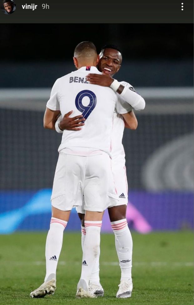 Karim Benzema ha pubblicato un'immagine nelle 'stories' di Instagram in cui appare con Vinicius, un'istantanea che è stata accompagnata da un inchino a forma di emoji.