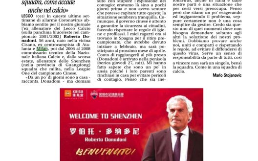 Il tecnico di Cisano Bergamasco ora allena in Cina. Allenatore dello Shenzhen, Donadoni racconta: “Da un po’ di giorni sono a casa, ho vissuto con stupore l’esplosione del contagio. Il governo cinese è attento alla salute dei suoi...