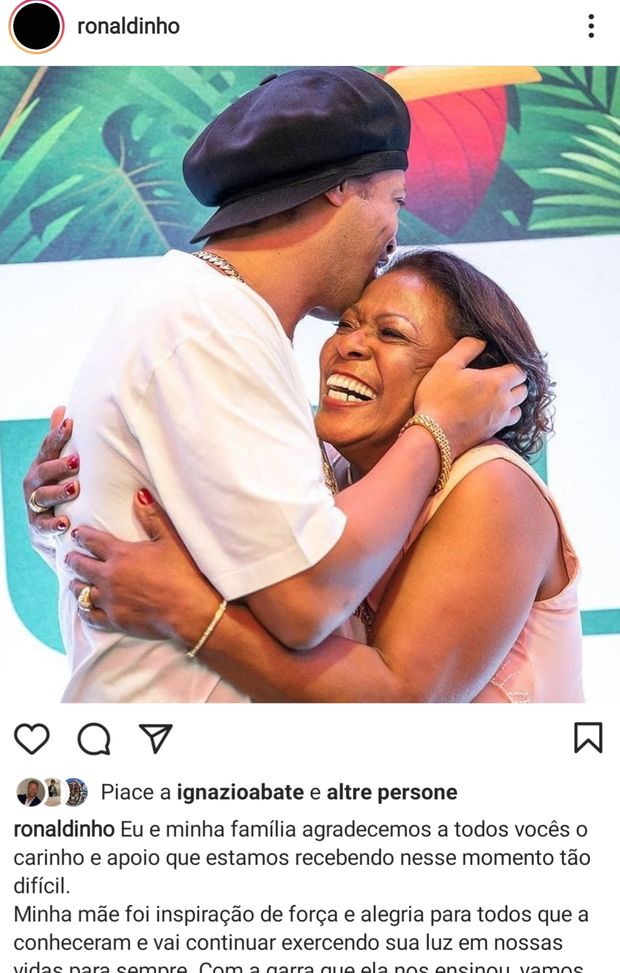 "La mia ispiratrice": Ronaldinho ha reso omaggio a sua madre dopo che è morta per complicazioni causate dal coronavirus