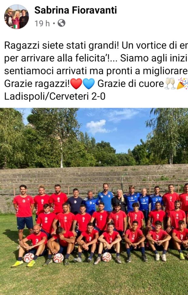 Il Ladispoli, alla prima uscita stagionale, si è regalato una grande soddisfazione, eliminando il Cerveteri: 2-0 il risultato finale. I giocatori di casa hanno dominato. Molto felici al riguardo sia il sindaco Grando che la presidente Fioravanti, che ha elogiato i suoi sui social.