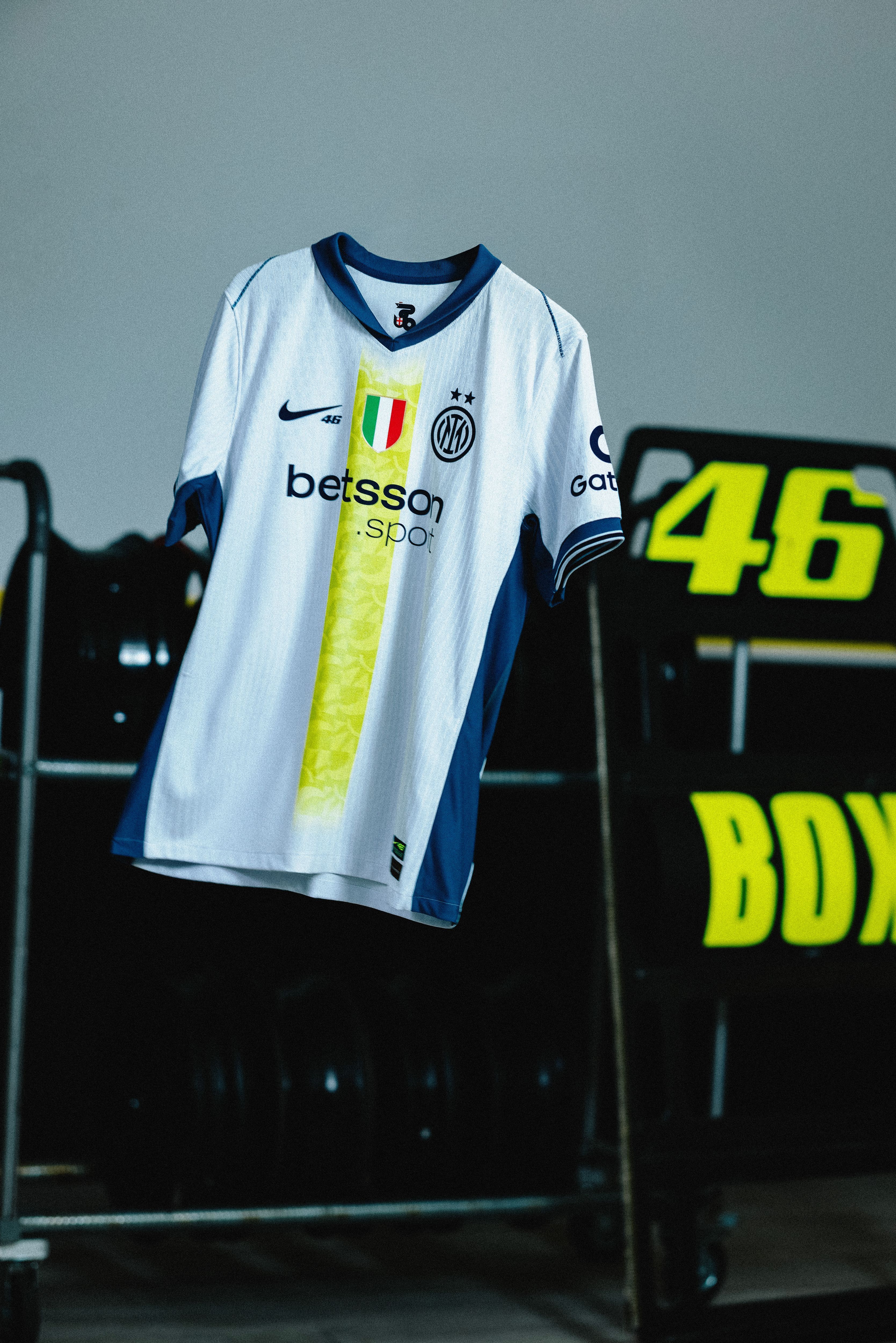 Come riporta il comunicato della società neroazzurra, la classica divisa da trasferta è stata rivisitata con l’aggiunta di elementi iconici della carriera di Valentino Rossi: il celebre "Sole e Luna" è stato integrato nel cuore del design della maglia, a simboleggiare l’unione di due mondi e a e celebrare il legame speciale tra Rossi e l'Inter. Sotto lo swoosh Nike sarà inserito il numero 46 mentre sul fondo della maglia sarà esposta la scritta "Engineered to the exact specifications of Valentino Rossi".