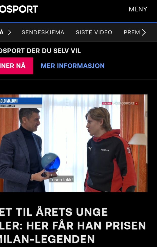 Le telecamere norvegesi di Eurosport hanno ripreso il momento della consegna del premio, avvenuta a Milanello. Il Pallone d'oro norvegese è stato invece vinto da un caro amico di Hauge, ovvero Erling Haaland.