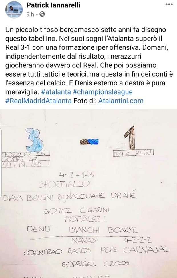 Non sarà Benalouane-Ronaldo, ma Romero-Benzema. Eppure la follia sognatrice del bimbo è stata ripagata. La sua Atalanta in campo contro il Real ci va davvero e a testa alta. Anche a Valdebebas, dopo la sconfitta di misura di Bergamo su cui i nerazzurri hanno molto da reciminare.