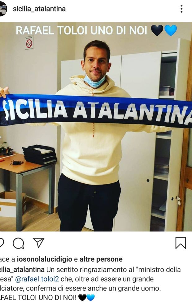 L'attivissimo gruppo Instagram della Sicilia atalantina gli ha inviato una sciarpa e lui ha ricambiato, posando subito con l'omaggio dei tifosi. Per i tifosi siciliani atalantini Toloi è il "ministro della Difesa".