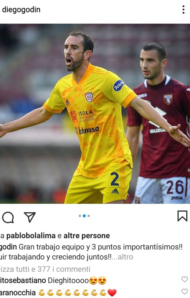 Anche il Faraone Godin si è lasciato andare ai festeggiamenti social, sottolineando il lavoro fatto in queste settimane per conquistare questi tre punti, raccogliendo consensi tra i suoi ex compagni all'Inter: "Dieghitooooo", gli risponde Sebastiano Esposito, ben 9 le emoticon usate da Andrea Ranocchia.