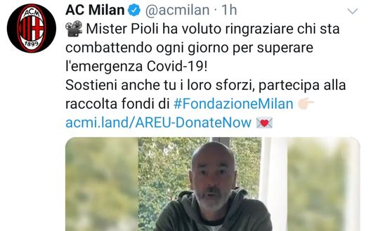 "Combattiamo insieme questa battaglia contro il Coronavirus al fianco di medici, dottori e infermieri, a cui va il mio personale ringraziamento". E' il messaggio, apparso sui profili social del Milan, di Stefano Pioli che lancia l'appello ai tifosi di contribuire alla raccolta fondi istituita dal club "per supportare gli sforzi di Areu": "Sostieni insieme a noi chi lavora e lotta ogni giorno per fronteggiare questa emergenza".
