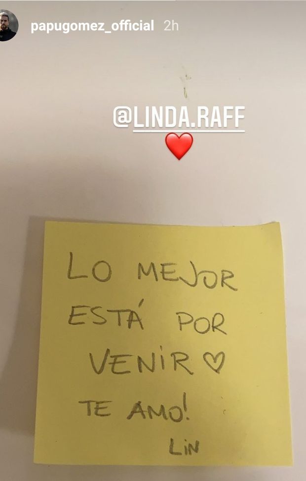 Ripostando un post-it lasciatogli dalla moglie, Alejandro "Papu" Gomez lancia messaggi. "Il meglio sta per venire" si legge sul messaggio scritto dalla compagna, Linda Raff, un concetto che il Papu condivide appieno.