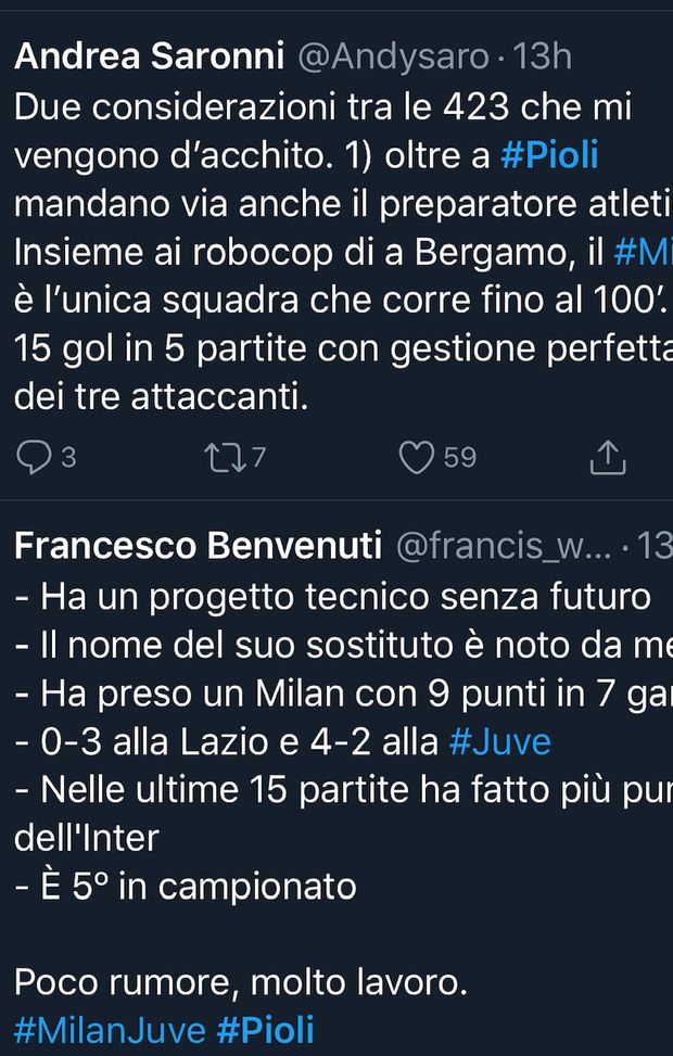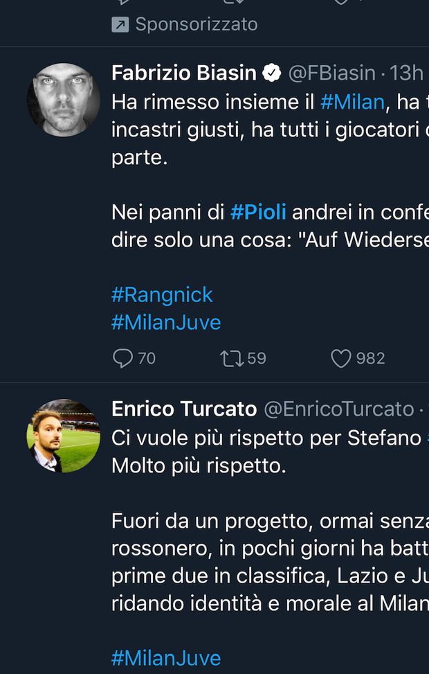 Il verbo si sta diffondendo via social e non solo. Anche attraverso la classiche chiacchiere da bar si sente che c'è chi vuole la riconferma di Pioli. In pochi, forse pochissimi si fidano di Ralf Ragnick. Viceversa, specie dopo il tris di vittorie contro le big, Roma, Lazio e Juventus, in molti vogliono ancora Stefano Pioli e chiedono rispetto non solo per l'allenatore ma anche per l'uomo. In fondo, parliamo di un allenatore che non bada ai rumors esterni e che con grande serietà a professionalità sta portando avanti, molto bene, il proprio lavoro.