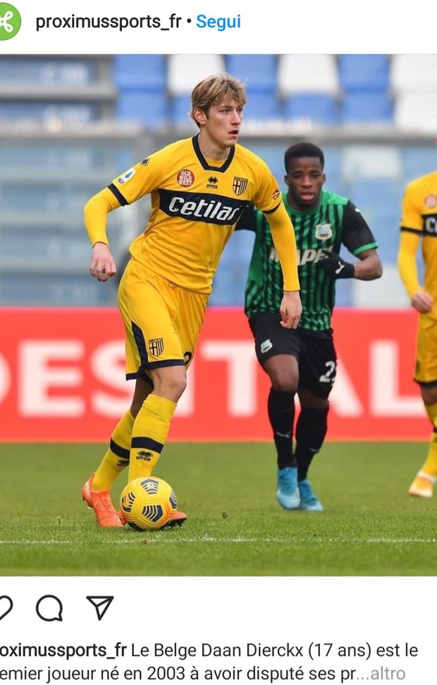 Sorpresa, quando in tribuna stampa, al Mapei, ci arrivano le formazioni. Nel Parma c’è uno che non abbiamo mai sentito, ha i capelli biondi e a caschetto. Diciassette anni, si chiama Daan Dierckx, è un difensore centrale belga, come il collega Busi, 21 anni, che passerà dall’essere tra i migliori, contro il Sassuolo, a commettere l’errore decisivo, allo scadere, su Gianmarco Ferrari, punito con il rigore.