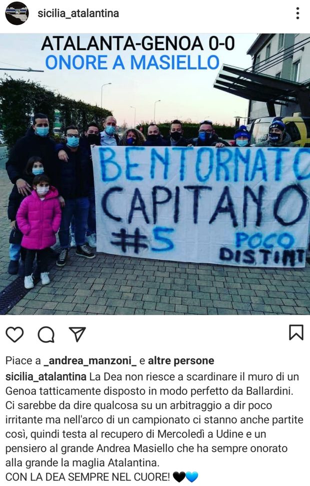 Andrea Masiello sempre nel cuore dei tifosi bergamaschi: anche i tifosi della "Sicilia atalantina" si sono uniti ai saluti...