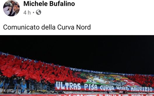 La Curva Nord degli Ultras Pisa ha inviato una nota in merito alla vicenda che vede protagonisti i tifosi più caldi della squadra toscana, un testo firmato dai gruppi organizzati della Curva Nord Maurizio Alberti.