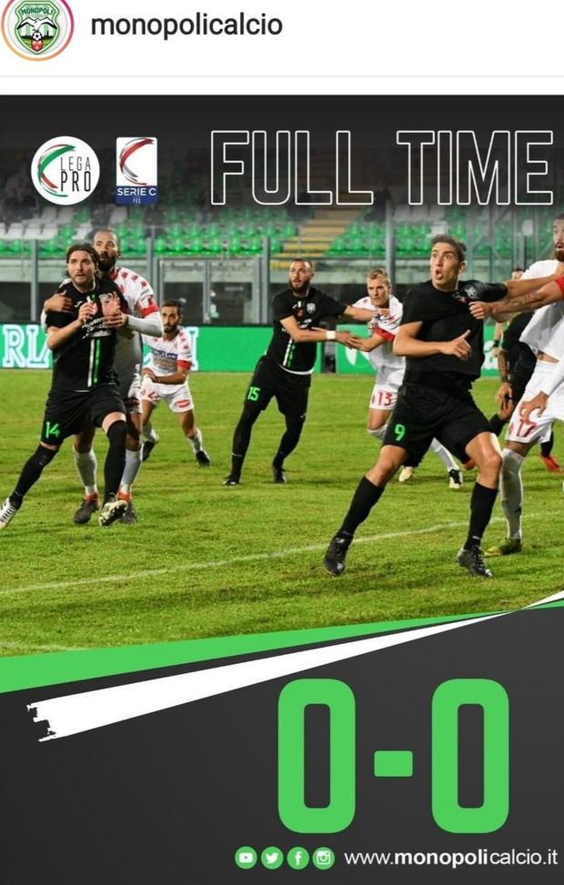 Pareggio tra Monopoli e Bari nel derby della sesta giornata di Serie C: 0-0 al Veneziani, davanti ai 650 tifosi biancoverdi accorsi allo stadio per la prima gara della stagione aperta al pubblico. Nonostante un match vivace con occasioni da entrambe le parti (anche un legno per i padroni di casa), nessuna delle due squadre è riuscita a sbloccare il risultato. I galletti hanno faticato a imporre il proprio dominio e hanno chiuso in 10 per l'espulsione di Sabbione nel finale. Scienza, allenatore del Monopoli, ha retto l'urto. Grandi parate di Menegatti, il portiere del Monopoli, nel secondo tempo.