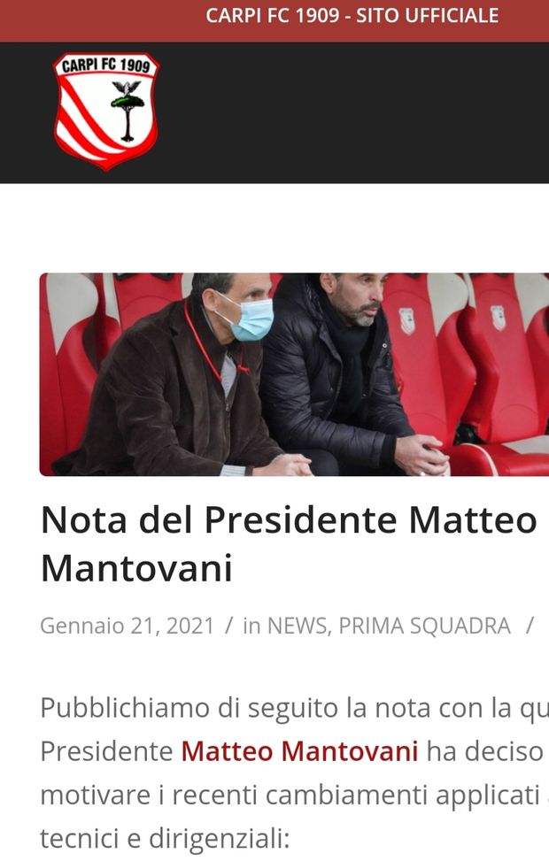 CARPI: ESONERO IMPROVVISO