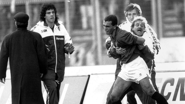 Ciò che successe al momento dell'espulsione fu un qualcosa mai successo prima nella storia del calcio italiano. Il giocatore del Torino espulso fece una scenata incredibile contro l'arbitro e fu portato a fatica fuori dal campo dai compagni di squadra, in particolare da Gianluigi Lentini. La sua rabbia era così forte che questo giocatore, in lacrime, cercò, con molta foga, di dimenarsi dalla “marcatura” dei compagni. Colui che fece quel gesto era stato Pasquale Bruno, classe 1962, difensore roccioso e grezzo di San Donato di Lecce alla seconda stagione il maglia granata dopo aver giocato tre stagioni proprio con la Juventus, con cui vinse una Coppa Italia ed una Coppa Uefa.