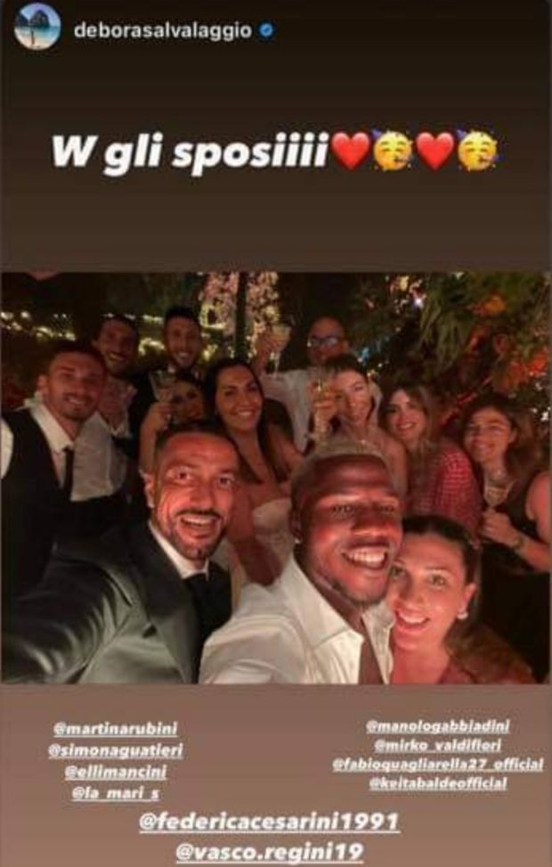 "Viva gli sposi", ha scritto Fabio Quagliarella in una storia sul suo profilo Instagram, nella quale i neo sposi Vasco e Federica sono protagonisti dopo le nozze.
