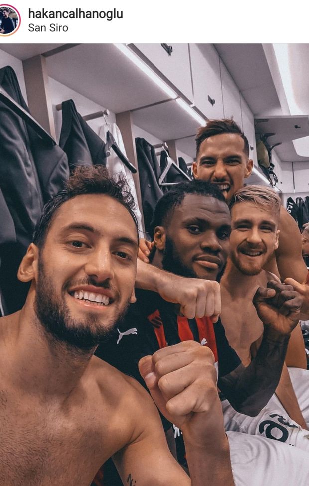 Complimenti e punti che arrivano grazie all'esistenza di un gruppo, come conferma l'abbraccio social in spogliatoio fra Calhanoglu, Kessie, Bennacer e Saelemaekers subito dopo la fine della partita...