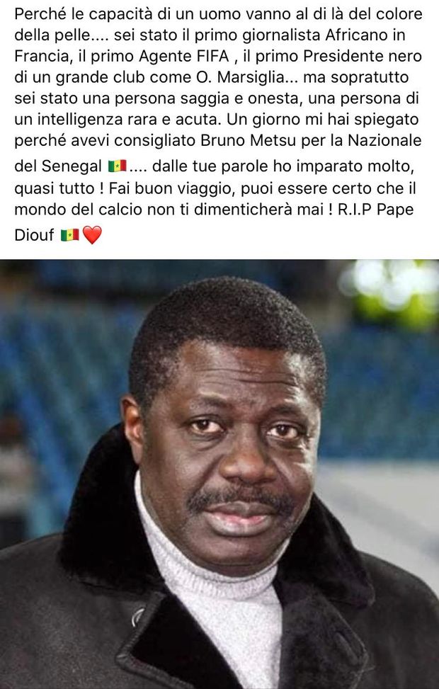 Pape Diouf scomparso prima del trasporto da Dakar a Nizza, il cordoglio di Kalidou Koulibaly