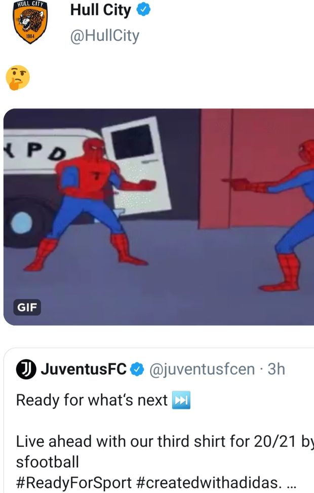 La Juventus ha presentato la terza maglia da gara per la stagione 2020-2021, e su Twitter è nato un simpatico siparietto fra i bianconeri e l’Hull City. Oggetto del contendere, la terza divisa della Juventus che quelli dell'Hull City da qualche parte devono averla già vista...