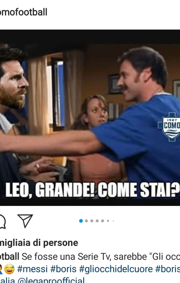 Nell’era dei social però ogni spunto è buono per farsi pubblicità e perché no, strappare un sorriso in tutta tranquillità. Approfittando della situazione contrattuale della Pulce (Messi infatti è già libero di trattare con altri club), il Como ha deciso di creare una carrellata di post in cui lo invita a giocare il match di Lega Pro contro l’Alessandria. Prendendo spunto da una scena della serie tv “Boris”, il social media manager comasco ironizza sul passato che per molti anni avrebbe legato il fenomeno argentino al piccolo club lagunare.