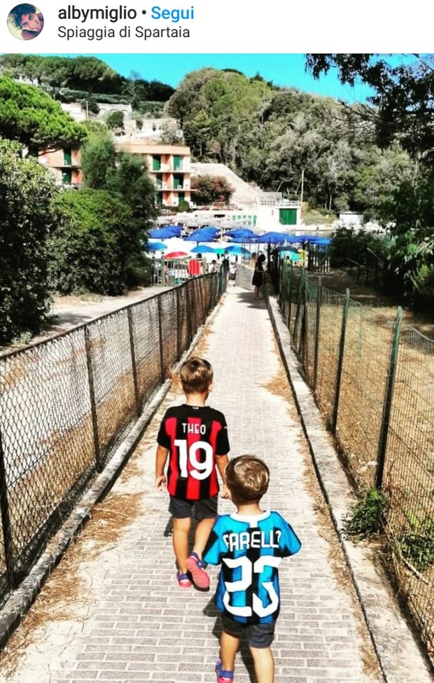 Due bimbi che vanno verso la spiaggia con la maglia uno di Theo Hernandez e l'altro di Nicolò Barella...E' una delle tante immagini estive da social, la conferma che a tutte le età il derby si prende delle pause ma non va mai davvero in vacanza...