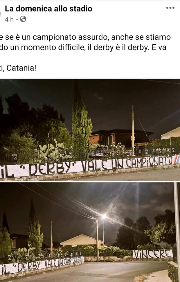 Le foto degli striscioni sono state pubblicate sui social con la seguente didascalia: “Anche se è un campionato assurdo, anche se stiamo vivendo un momento difficile, il derby è il derby. E va vinto. Avanti, Catania!”.