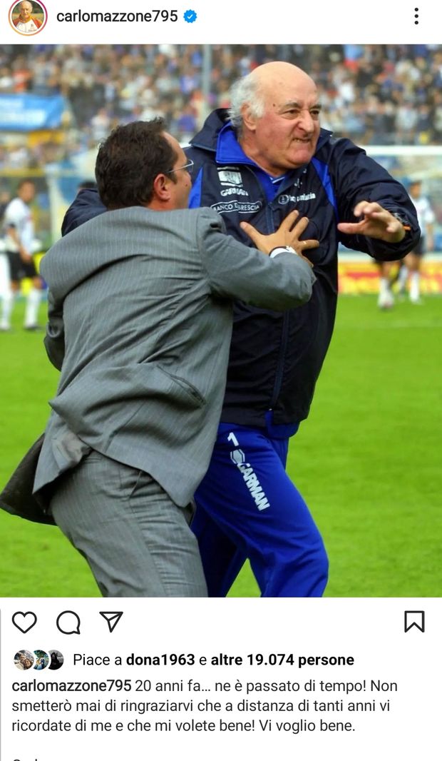 "20 anni fa… ne è passato di tempo! Non smetterò mai di ringraziarvi che a distanza di tanti anni vi ricordate di me e che mi volete bene! Vi voglio bene". Carletto Mazzone ha ricordato così sui social l'anniversario della sua mitica corsa, una delle immagini più iconiche per il calcio italiano del nuovo millennio.