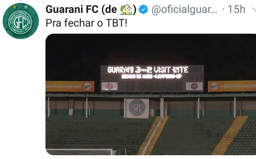 TBT è l'acronimo di Throwback Thursday, che è ampiamente usato nei social network per ricordare un momento nel passato. Nel caso del Guarani, il ricordo non è stato di una vecchia impresa, ma di un derby che è ancora fresco nella memoria. Il Burge ha provocato il rivale ricordando l'ultima partita prima dello stop a causa del Coronavirus, con una vittoria per 3-2 a Brinco de Ouro.