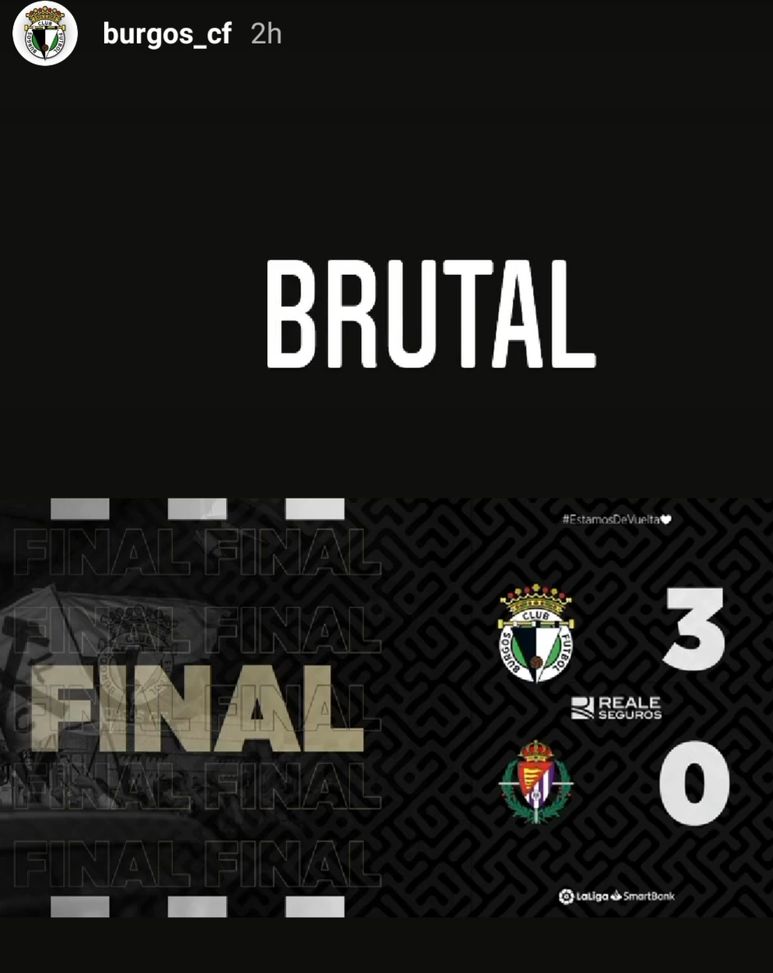 Il Burgos ha vinto il derby contro il Valladolid in una partita in cui gli ospiti sconfitti hanno avuto più controllo di palla ma in cui i padroni di casa vincitori hanno saputo creare maggiori e migliori occasioni. Il primo gol messo a segno su rigore dal Burgos e la successiva doppietta ha permesso agli uomini di Calero di affrontare la partita con più calma e senza rischiare in nessun momento di compromettere il risultato.
