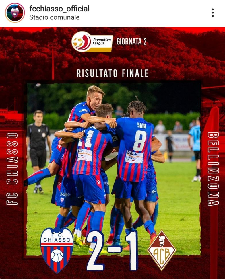 Dopo il successo iniziale contro lo Stade Nyonnais e la soffertissima qualificazione in Coppa Svizzera contro l’Unterstrass, il Chiasso si è ripetuto nel primo derby stagionale contro il quotato e ambizioso Bellinzona. Un 2-1 finale che premia il grande cinismo sotto porta mostrato dai ragazzi di mister Raineri. I chiassesi hanno beneficiato, oltre alla strepitosa serata del loro portiere, anche della solita preziosa regia di capitan Maccoppi. A fine gara, i giocatori del Chiasso si sono messi in fila e sono andati uno ad uno a salutare i tifosi della curva che sventolavano la bandiera della vittoria.