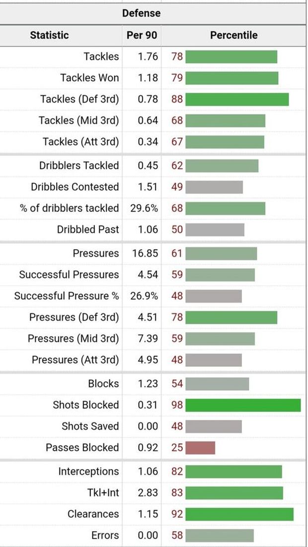 Partiamo dall'immagine scelta per questo post: i percentili in fase difensiva e di pressing, il lavoro senza palla in confronto ai pari ruolo (ali/treq). Abbiamo sempre detto che il Milan non avrebbe mai puntato su giocatori senza doppia fase come ad esempio l'attuale James Rodriguez o Papu Gomez o Coutinho. Giocatori di talento, ma che non danno alcun contributo difensivo. Il Milan ha scelto un tipo di calcio veloce, nel quale tutti devono aiutare e tutti devono avere buona gamba e capacità di ribaltare il fronte e bravi nell'uno contro uno. Difensivamente e in pressing, Messias è tra i migliori dando un ottimo contributo. Elemento essenziale del gioco rossonero nel quale tutti devono aiutare e pressare.