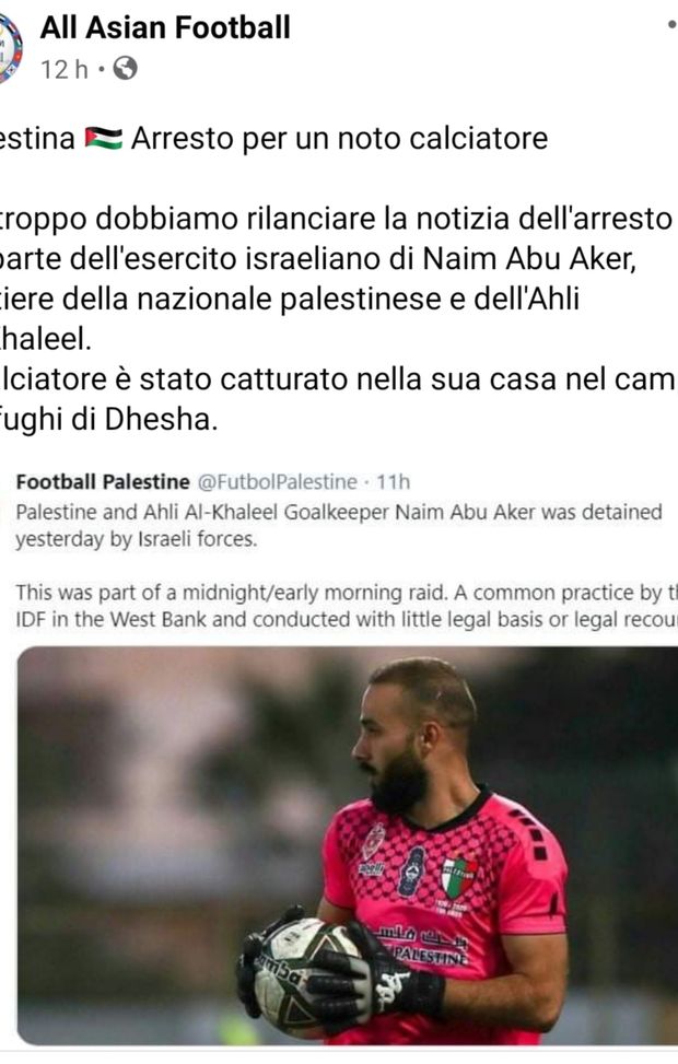 Arresti israeliani: fermato il portiere della Nazionale palestinese di calcio