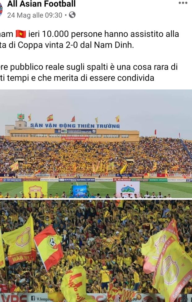 Ecco il calcio con il pubblico: stadio sold out in Vietnam per la vittoria del Nam Dinh nella Coppa nazionale