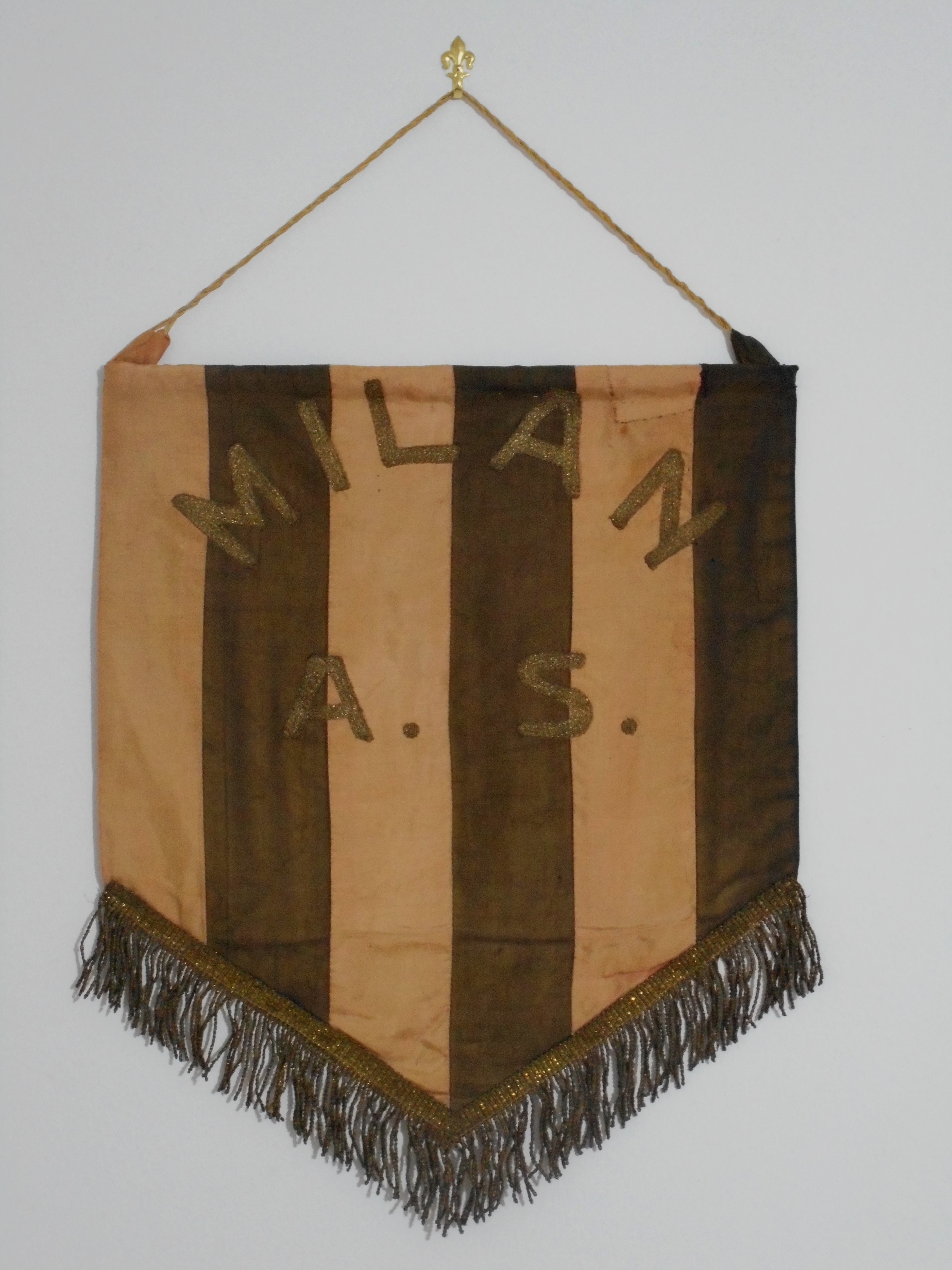 “Difficile fare una graduatoria ma dovendo scegliere assegno la mia preferenza, per motivi di affetto e ragioni di tifo, a un gagliardetto del Milan estremamente raro. Esso fu consegnato ai croati dell’Hajduk Spalato in una delle due amichevoli che il Milan disputò contro tale compagine nel giugno del 1938. All’epoca la denominazione era A.S. Milan che i rossoneri mantennero soltanto per pochi anni. Dovendo invece indicare la mia preferenza per questioni di rarità, sarei davvero in imbarazzo. Infatti nella mia collezione ci sono pezzi che vanno dagli anni’10 (labaro della Pro Vercelli) e che ripercorrono la storia del calcio fino ai giorni nostri. Triangoli di stoffa passati nelle mani di grandi campioni come Pelé, Cruijff o insegne di squadre italiane e straniere (club e rappresentative nazionali) universalmente note. Qualche esempio? Barcellona 1931, Italia mondiale del ’38, Chelsea del 1949, Nazionale spagnola mondiali del Brasile del ’50 e Italia consegnato all’Austria nell’aprile 1950, Santos anni ’60 autografato da tutta la squadra, Olanda consegnato da Cruijff al capitano del Belgio nel 1976, Brasile mondiali di Germania del 1974, Italia finale di coppa del mondo del 1994. Mi fermo qui conscio del fatto di non aver dato sicuramente pari rango ad altri gagliardetti della mia raccolta meritevoli di pari menzione”.