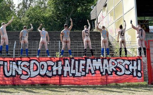 In Germania domenica due squadre a Oer-Erkenschwick, nella Renania Settentrionale-Vestfalia, hanno giocato una partita completamente nude, come parte di una protesta contro un calcio governato dai soldi. La sfida è stata organizzata dall’artista Gerrit Starczewski allo Stimberg-stadion, all’estremità nord dell’area industriale della Ruhr.