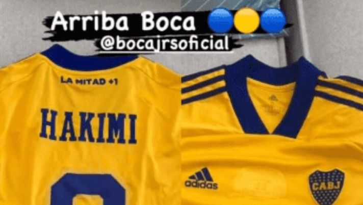 Dal rapporto col compagno è nata la passione per gli Xeneizes che Hakimi ha dichiarato su Instagram: in una story si vede infatti la maglia numero 2 del Boca, il modello recente per omaggiare gli 80 anni della Bombonera, con il suo nome. Il messaggio a corredo è "Arriba Boca" con il ringraziamento all'ex compagno per il gradito regalo. Le note in sottofondo sono quelle di Azul y Oro del rapper Trueno, artista del quartiere La Boca e grande tifoso amarillo.