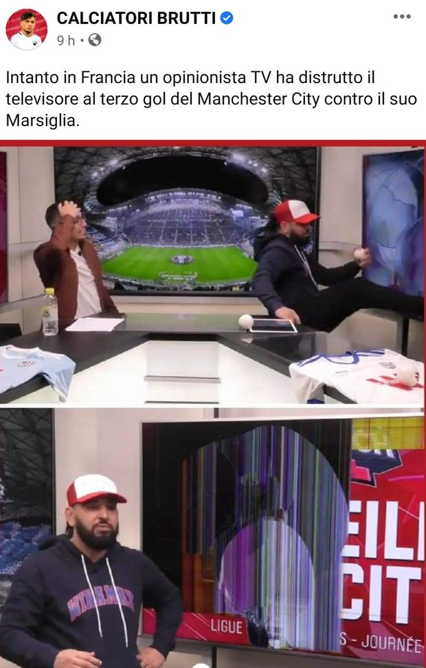 Il Manchester City segna ancora e l’opinionista super tifoso del Marsiglia spacca il televisore in diretta!