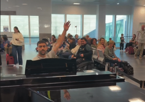 Aereo in ritardo? Dani Muñoz improvvisa un "concerto" al pianoforte!